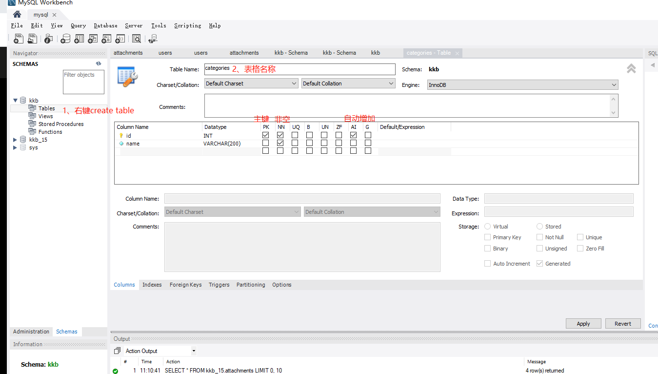 - 2、在kkb数据库中创建一个表users